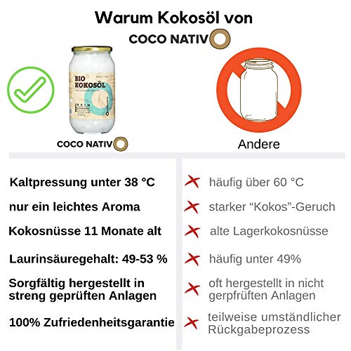 ? ♥Unser Bio Kokosöl ist 100% nativ und wird schonend in der 1. Kaltpressung in Rohkostqualität gewonnen.