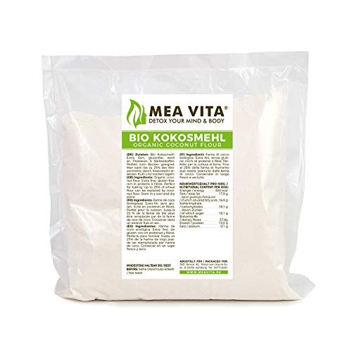Dieses nährstoffreiche Bio Kokosmehl wird aus getrocknetem Kokosfleisch zu feinem Mehl vermahlen. Es ist glutenfrei und perfekt geeignet für kohlenhydratarme Rezepte wie Brot oder Kuchen.