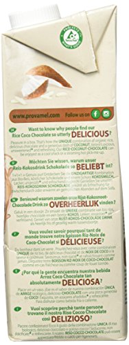 Zutaten: Wasser, europäischer Reis* (17%), Kokosmilch* (4%), Magerkakao*, Schokolade* (0,5%), Verdickungsmittel (Johannisbrotkernmehl*), Meersalz, natürliches Kokosaroma*. *= aus kontrolliert biologischem Anbau. Von Natur aus gluten- und laktosefrei. Kann Spuren von Mandeln, Haselnüssen, Macadamianüssen und Cashewkernen enthalten.